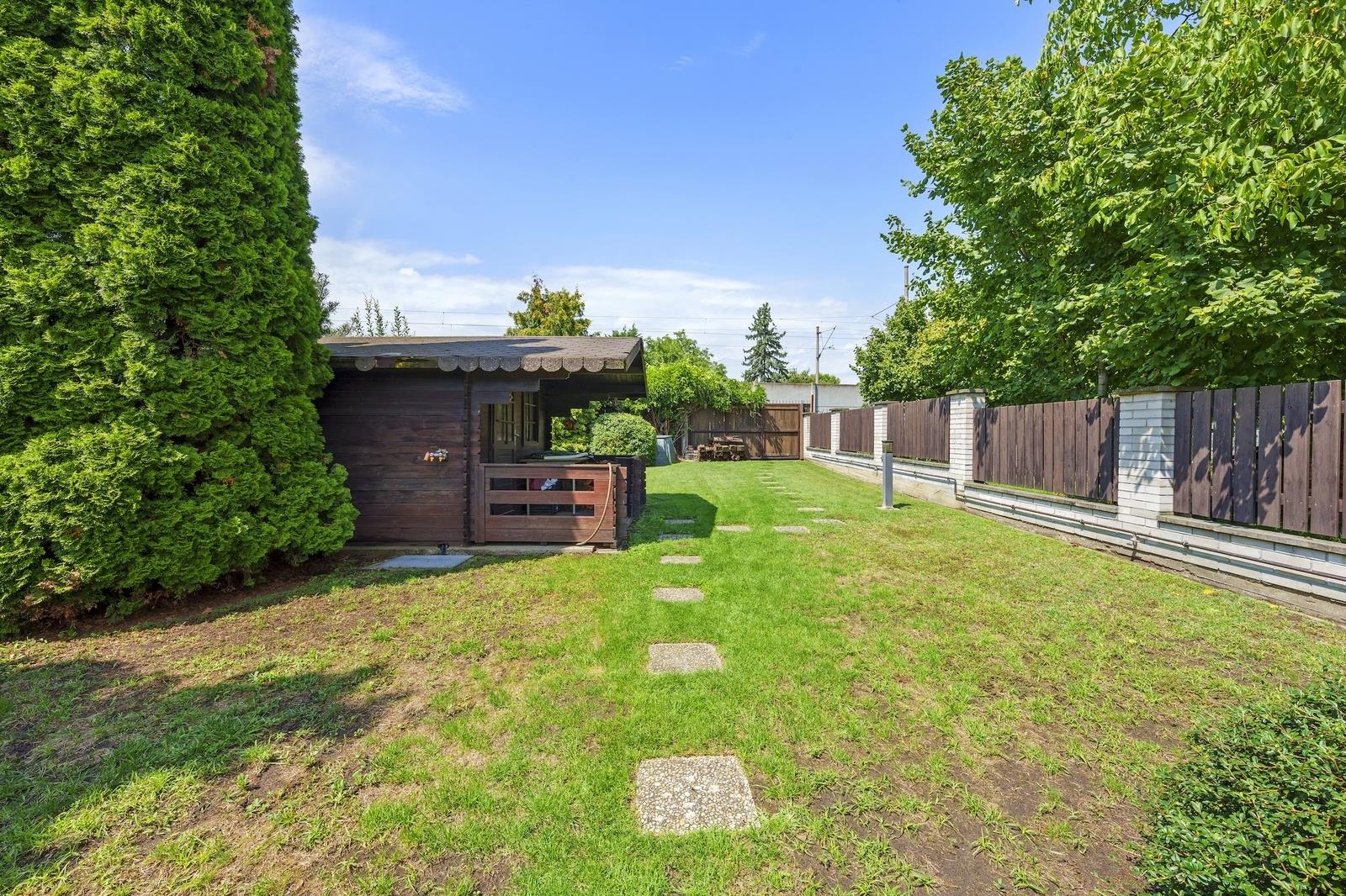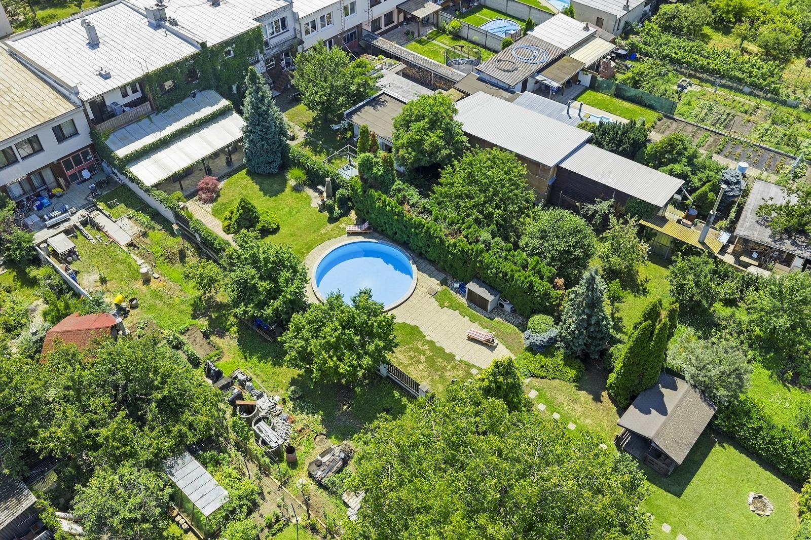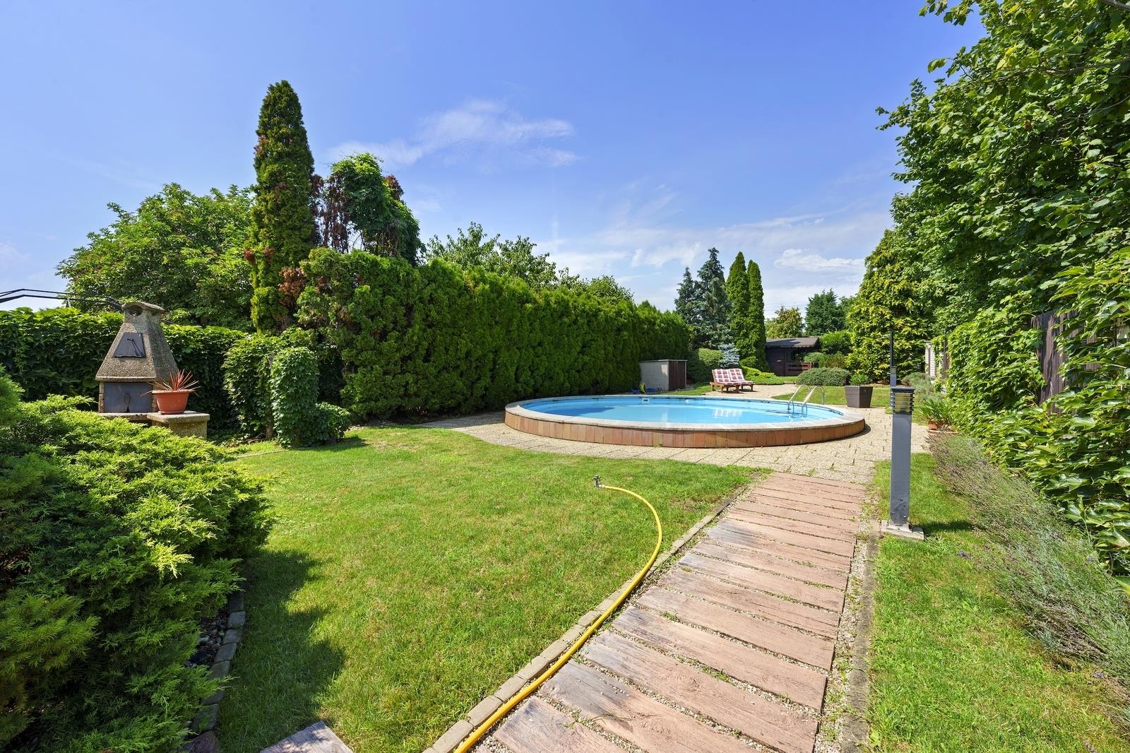 Součástí nemovitosti je také příjemná zahrada, která nabízí prostor pro odpočinek, rodinné posezení, letní grilování nebo bezpečné místo pro dětské hry. Zahradu doplňuje bazén a zahradní domek, a hned u domu se nachází velká zastřešená terasa, ideální pro relaxaci či společné venkovní aktivity. Vytváří tak ideální propojení komfortního bydlení s venkovním prostorem a soukromím. Na zahradě je vlastní studna.