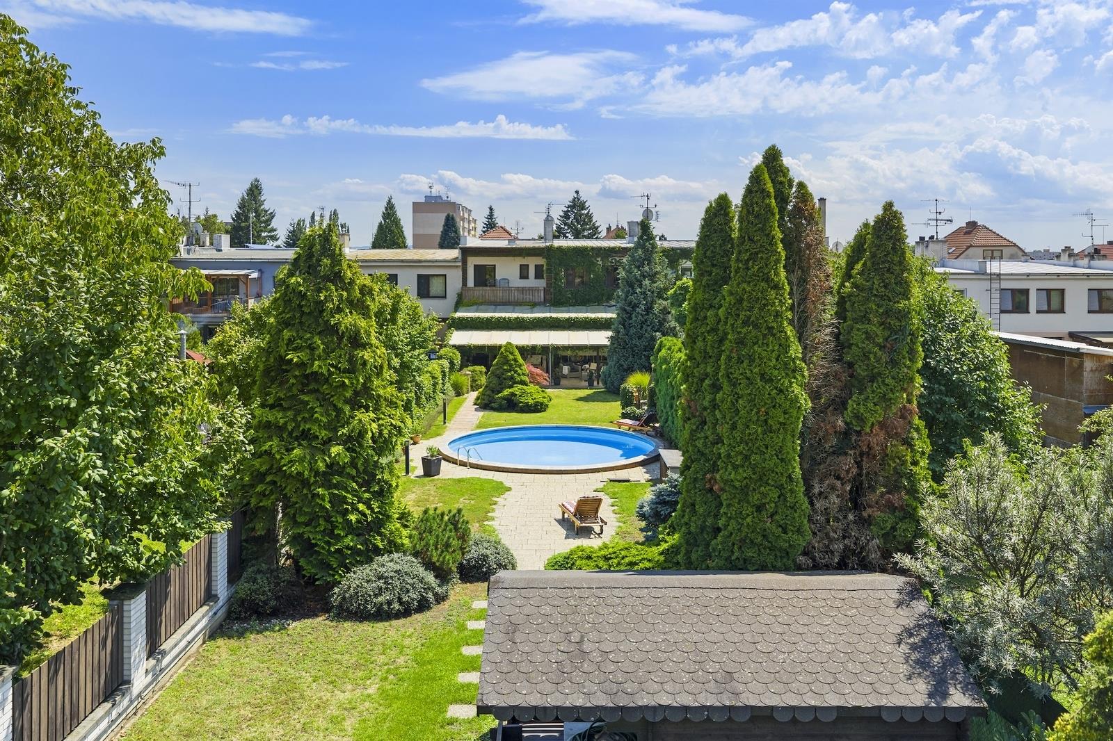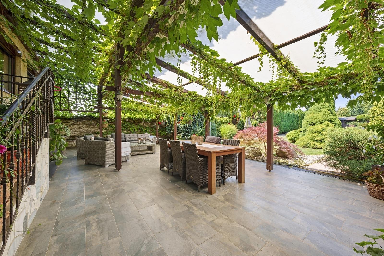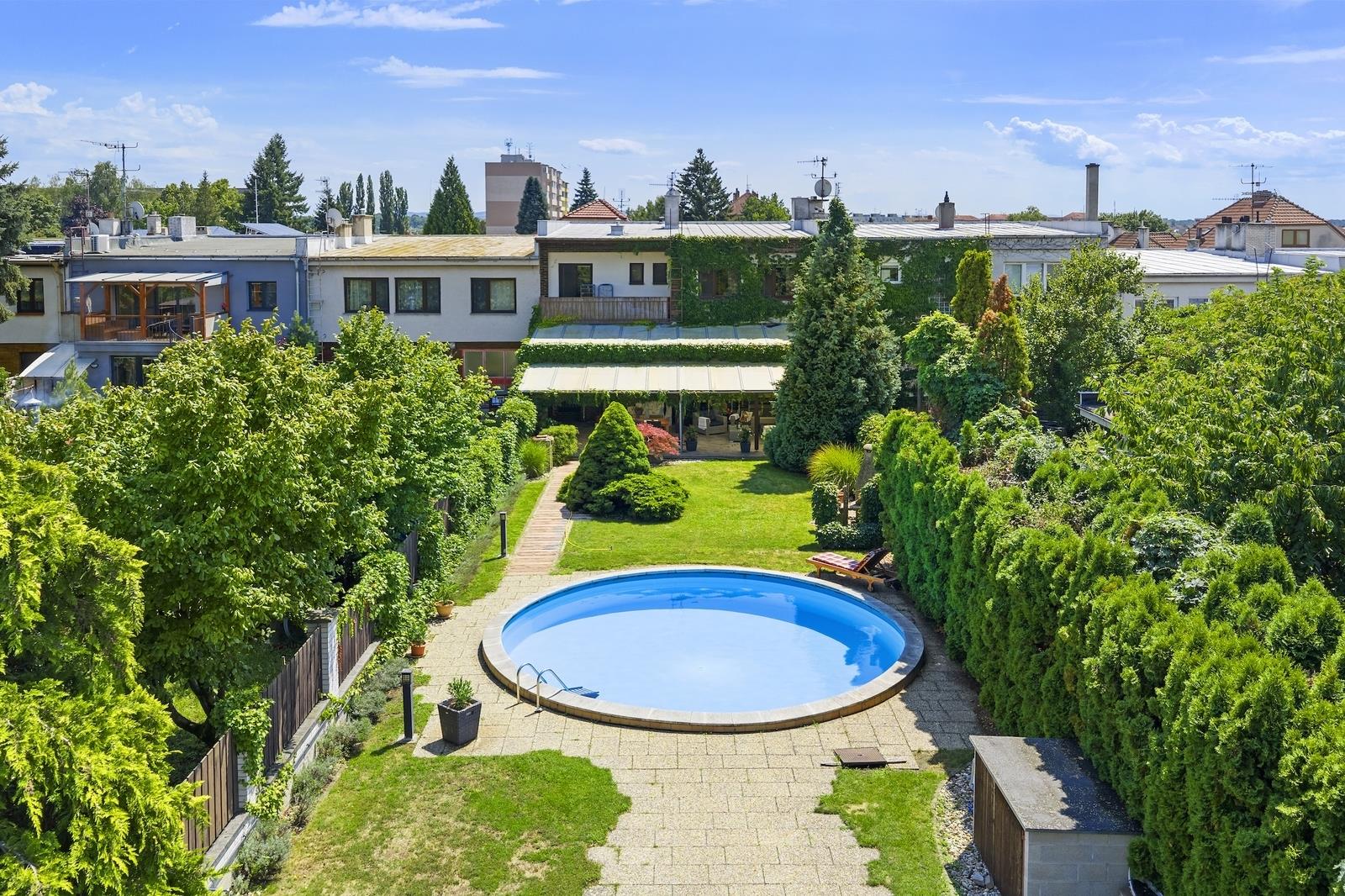 Součástí nemovitosti je také příjemná zahrada, která nabízí prostor pro odpočinek, rodinné posezení, letní grilování nebo bezpečné místo pro dětské hry. Zahradu doplňuje bazén a zahradní domek, a hned u domu se nachází velká zastřešená terasa, ideální pro relaxaci či společné venkovní aktivity. Vytváří tak ideální propojení komfortního bydlení s venkovním prostorem a soukromím. Na zahradě je vlastní studna.