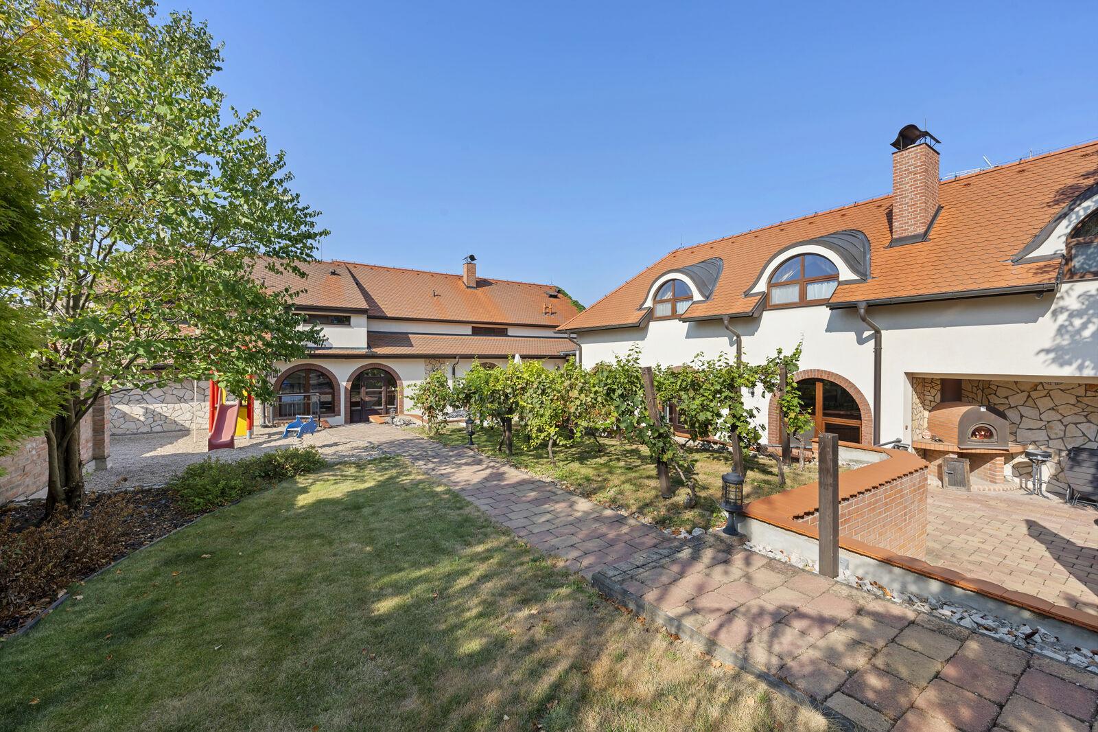 Luxusní hotel nabízí kompletní služby pro náročné klienty. K dispozici je prostorná vstupní hala s recepcí, stylová restaurace s barem, kde si hosté mohou vychutnat místní speciality a vynikající vína přímo z vinného archivu. Pro milovníky vína je připraven unikátní vinný sklep s posezením. V letních měsících mohou hosté relaxovat na příjemné zahrádce s malým sadem a vinicí. Pro obchodní jednání slouží moderně vybavený konferenční sál. Hotel disponuje výtahem a celkem 14 komfortními pokoji. Pro sportovní vyžití je k dispozici profesionální golfový simulátor FSG.