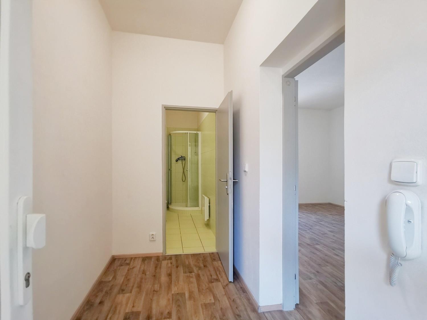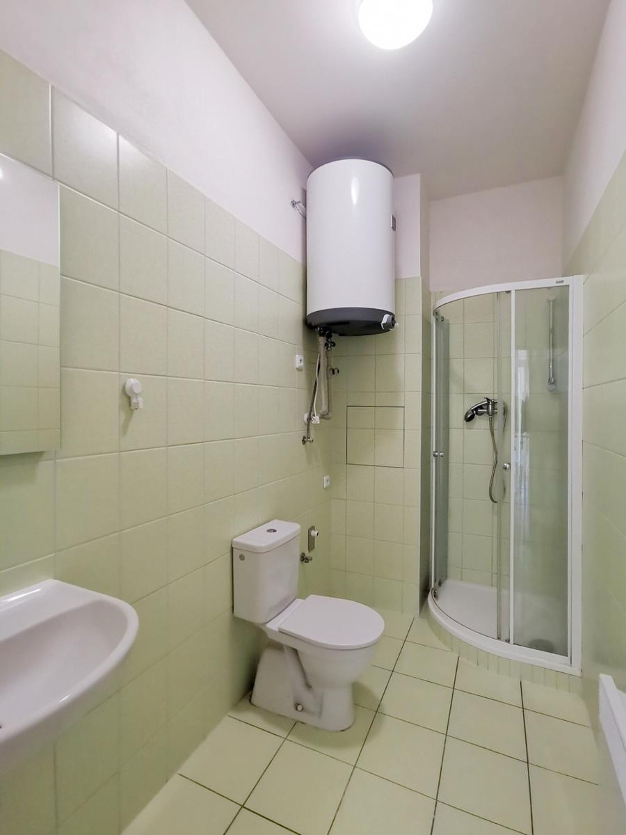 Byt je vybavený kuchyňskou linkou s el. varnou deskou, dřezem a osvětlením. Na podlahách plovoucí podlaha a dlažba, koupelna se sprchovým koutem a WC. Možnost dovybavení lednicí a pračkou [plus 250 Kč/měsíc za každý spotřebič].